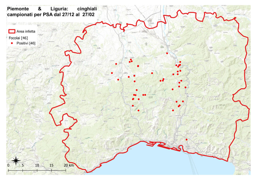 L’Istituto Zooprofilattico Sperimentale del Piemonte, Liguria e Valle d’Aosta ha aggiornato al 27 febbraio 2022 la mappa degli esiti dei controlli per la presenza della Peste Suina Africana nella zona infetta.